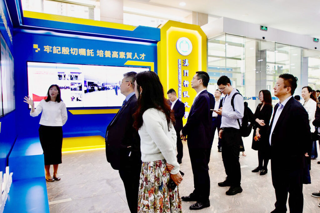 隨後,考察團到訪澳門大學創新創業中心,深入瞭解中心的孵化成果及最新發展。在中心主任、健康科學學院教授梁麗嫻的接待下,走進國家級衆創空間,瞭解其在支持青年創業、推動協同創新方面的實踐成果,並觀看了中心優秀孵化企業明微(澳門)生物科技與澳門超智技術有限公司的項目展示,考察團與相關科研團隊圍繞技術落地場景、產業化路徑及資本對接機制展開深入探討,現場互動熱烈,反響積極。