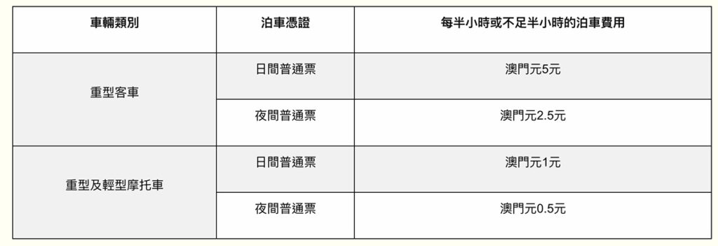 「新城B區公共停車場」收費表