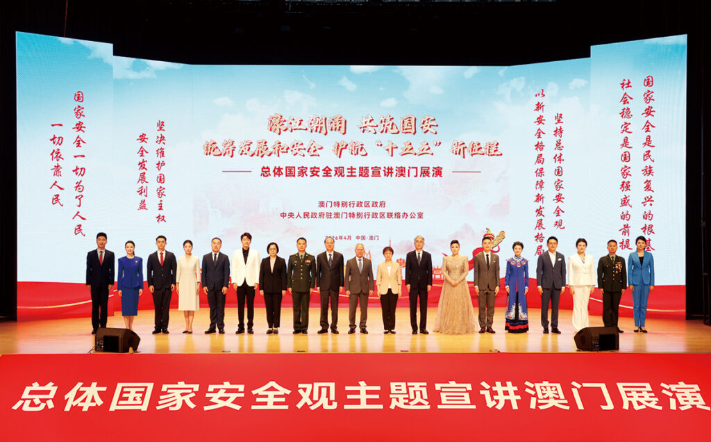 為深入學習貫徹總體國家安全觀,推動國家安全宣傳教育在澳門走深走實,凝聚維護國家安全、守護澳門繁榮穩定的社會合力,昨日上午,澳門特別行政區政府與中央人民政府駐澳門特別行政區聯絡辦公室在澳門大學會堂聯合舉辦「統籌發展與安全 護航『十五五』新征程」總體國家安全觀主題宣講展演。