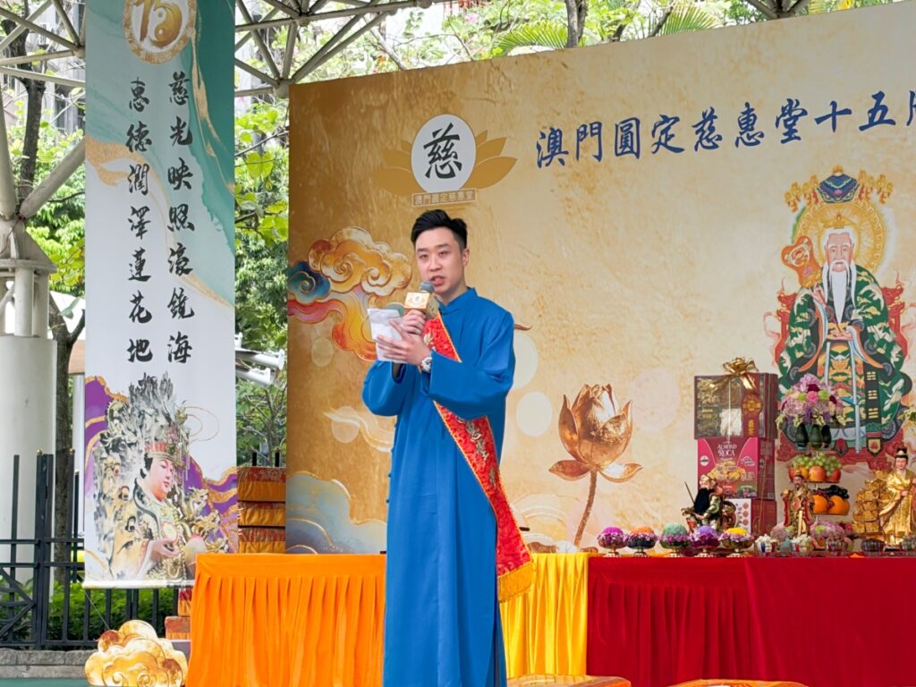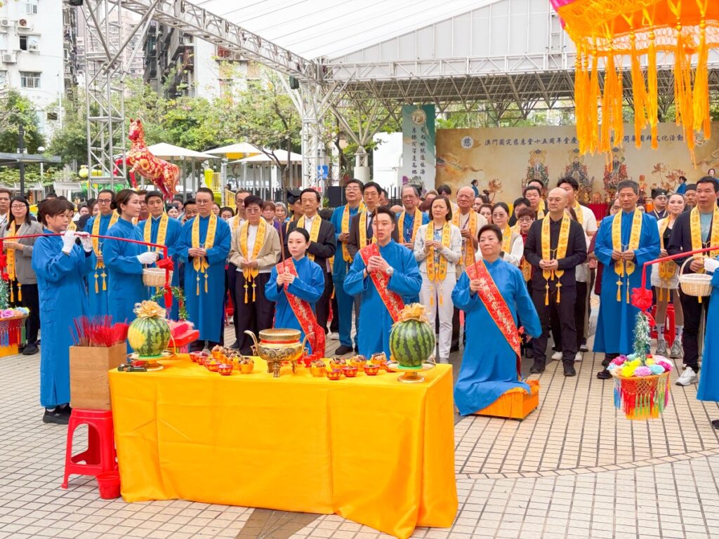 大典今日上午11時舉行,澳門基金會行政委員會副主席鍾怡,文化局文遺廳廳長蘇建明,旅遊局代表高珍美,澳區全國人大代表劉藝良、施家倫、吳小麗,全國政協澳區委員阮建昆、莫志偉,行政會委員、街總理事長陳家良,議員馬志成、李良汪、梁孫旭、陳禮祺、李靜儀,議員、澳門口述歷史協會會長林發欽,香港道教聯合會主席梁德華道長,中國台灣松山慈惠堂總策劃長李瑞彬,馬來西亞慈惠堂堂主余蓮及中國涇川王母宮住持胡宗一道長等出席,與該堂堂主周志輝、主持姚羡紅及副堂主楊明燕等主禮。