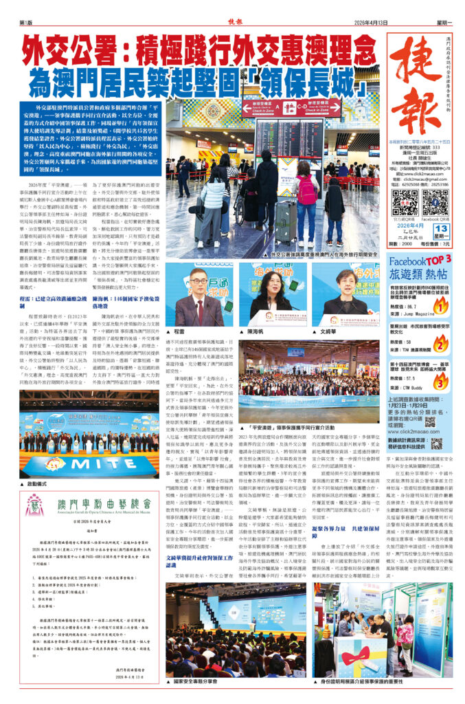 外交公署:積極踐行外交惠澳理念 為澳門居民築起堅固「領保長城」