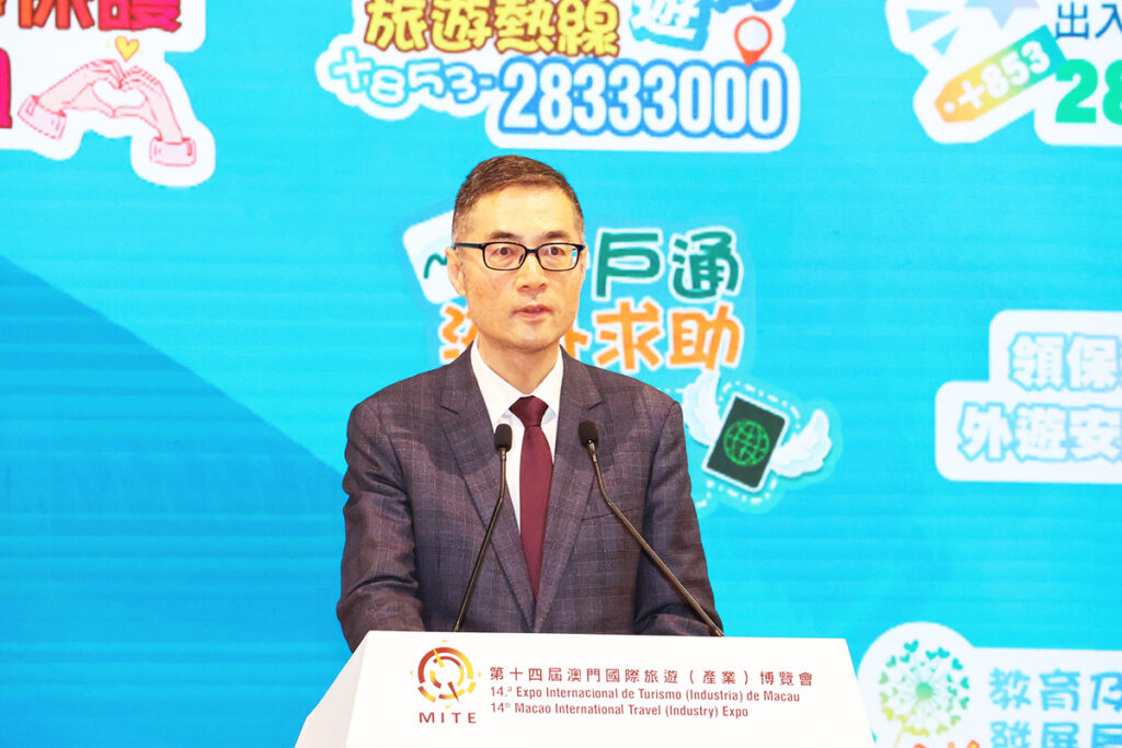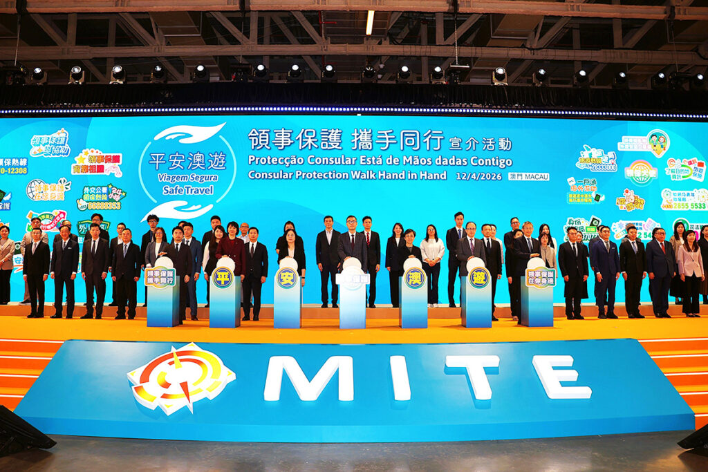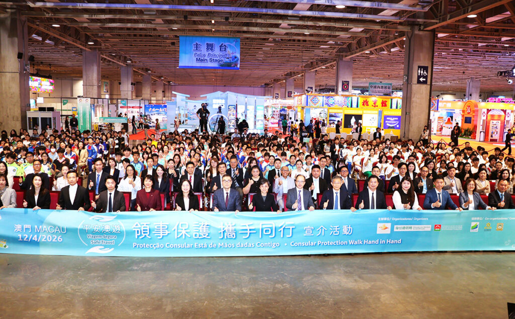 2026年度「平安澳遊」——領事保護攜手同行宣介活動昨上午在威尼斯人會展中心A館旅博會會場內舉行,外交公署副特派員程雷、外交公署領事部主任林如海、身份證明局局長陳海帆、旅遊局局長文綺華、治安警察局代局長伍素萍、司法警察局副局長岑錦榮、教青局副局長丁少雄、身份證明局旅行證件廳廳長唐偉杰、旅遊局旅遊推廣廳廳長劉鳳池、教青局學生廳廳長陳旭偉、治安警察局居留及逗留廳代廳長梅健明、司法警察局資訊罪案調查處處長龍漢威等出席並主持開幕儀式。