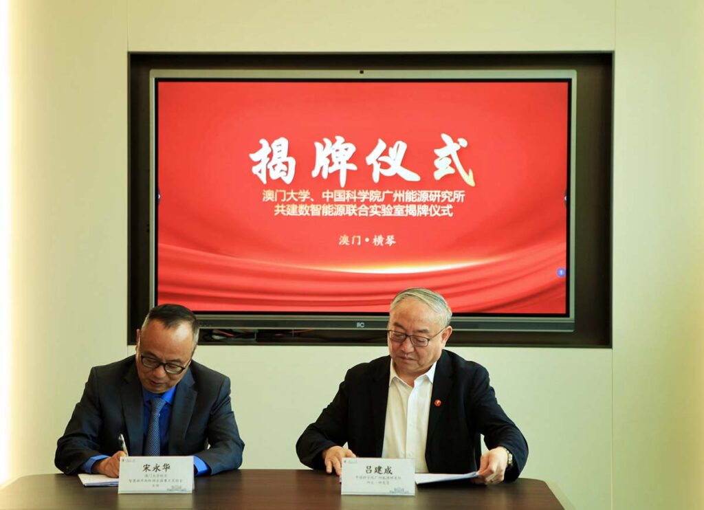 為助力粵港澳大灣區乃至全國低碳能源行業創新發展,澳門大學與中國科學院廣州能源研究所成立「澳門大學、中國科學院廣州能源研究所數智能源聯合實驗室」,並舉行揭牌儀式。