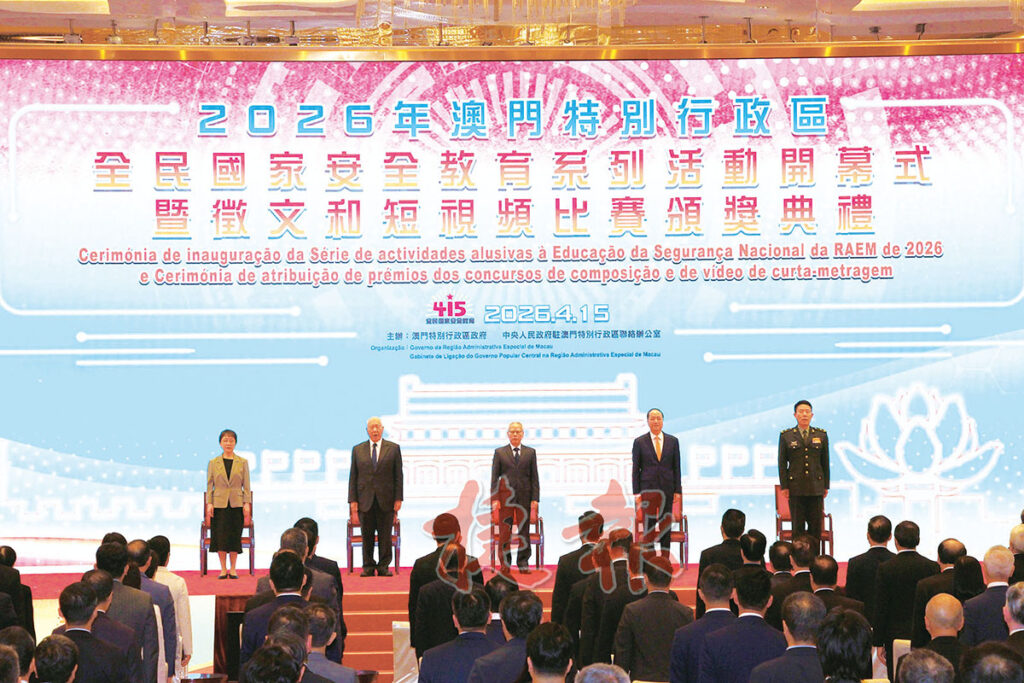 2026年澳門特別行政區全民國家安全教育系列活動開幕式暨徵文和短視頻比賽頒獎典禮昨下午6時在中國與葡語國家商貿合作服務平台綜合體舉行。行政長官、澳門特別行政區維護國家安全委員會主席岑浩輝,全國政協副主席何厚鏵,中央港澳工作辦公室副主任、國務院港澳事務辦公室副主任、中央人民政府駐澳聯絡辦公室主任、澳門特別行政區維護國家安全委員會國家安全事務顧問鄭新聰,外交部駐澳特派員公署特派員卞立新,解放軍駐澳部隊司令員陳文勝主禮。