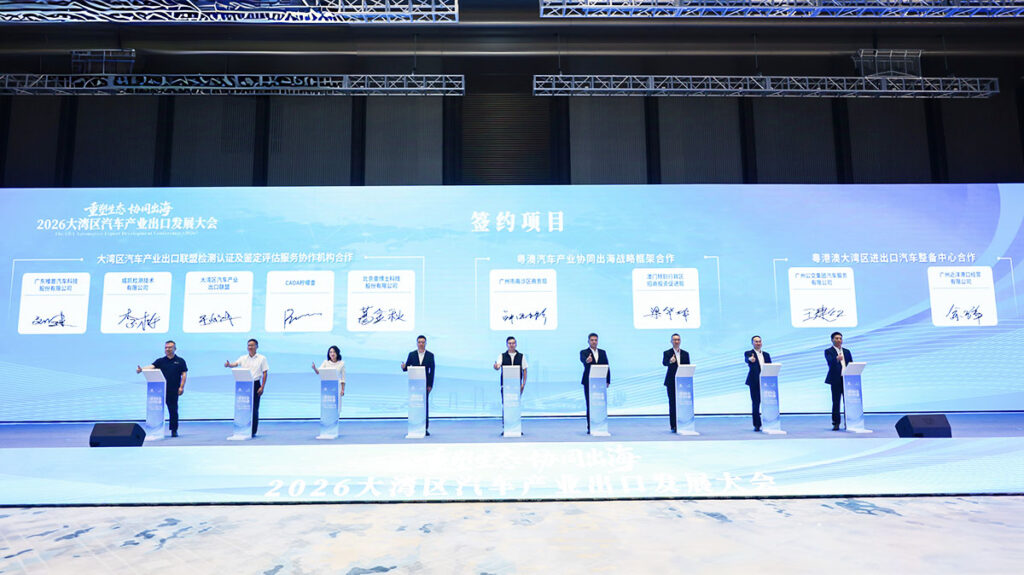 「2026大灣區汽車產業出口發展大會」 以「重塑生態·協同出海」為主題在南沙國際會展中心舉行。大會吸引來自政府、行業協會、汽車產業鏈企業、行業專家等約1,200名國際代表參與,共商汽車出口高品質發展新路徑。