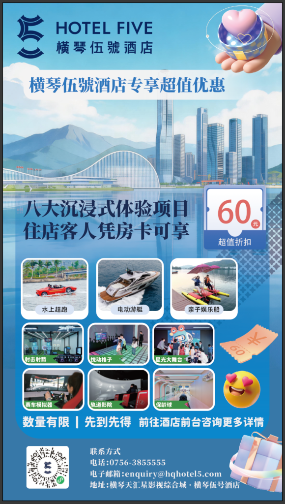 為實現旅客一站式跨境娛樂體驗,橫琴伍號酒店攜手澳門售票網推出多款澳琴聯乘套票,精選組合包括: