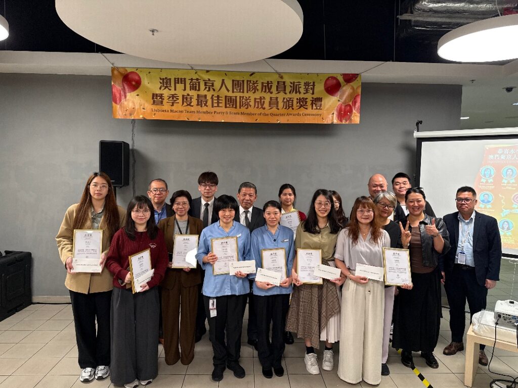 澳門葡京人今(28)日舉辦「2026 年第一季度最佳團隊成員」頒獎禮,多位獲獎團隊成員來自前線與後勤崗位,卻同樣展現出專業精神、責任感與團隊合作的力量,正是這份凝聚力與付出,讓訪客感受到真誠而難忘的休閒體驗,締造美好回憶。