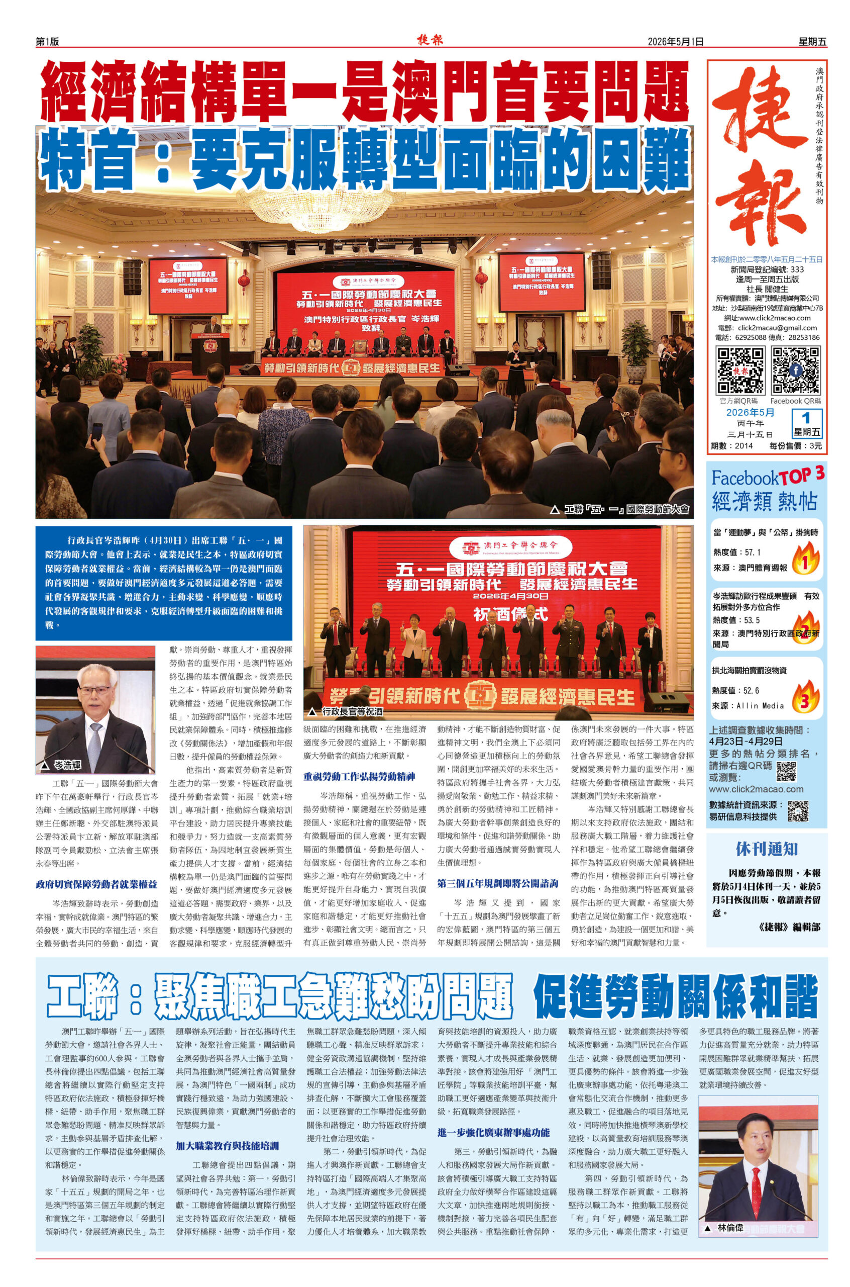 澳門捷報,澳門捷報網站-專注大灣區創新、創意和創業的"三創"資訊,並每日公佈本澳時事熱話榜單,按不同話題分類搜羅居民最關注的話題,貼近居民生活.