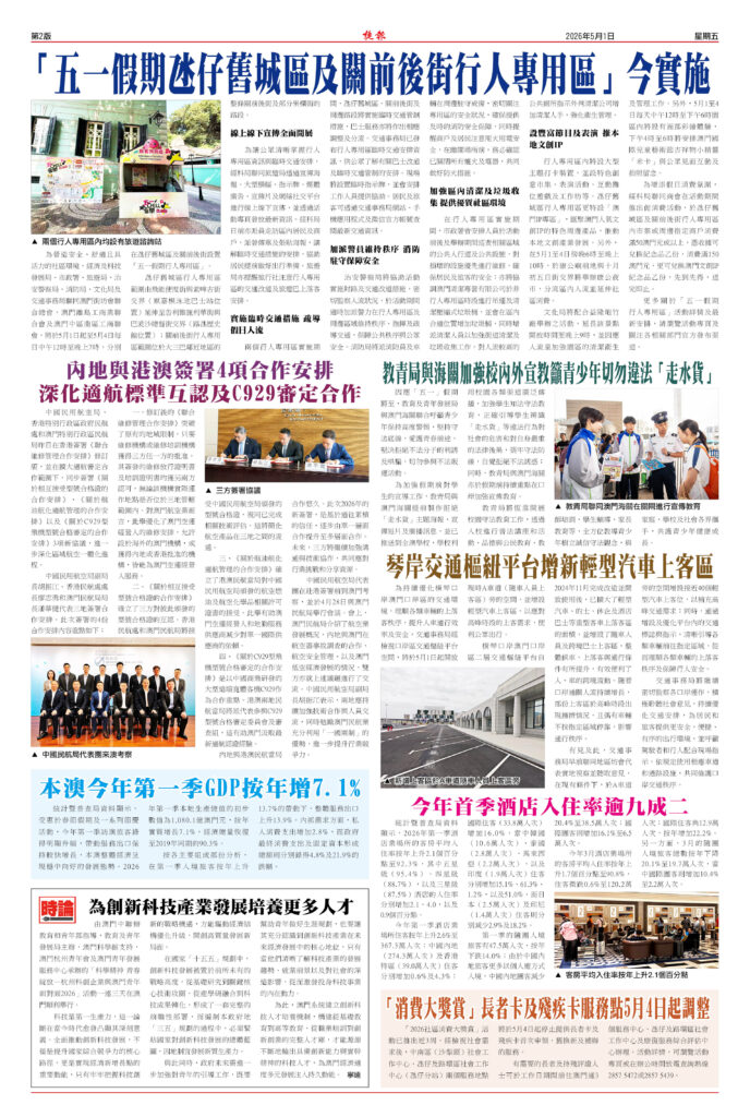 「五一假期氹仔舊城區及關前後街行人專用區」今實施